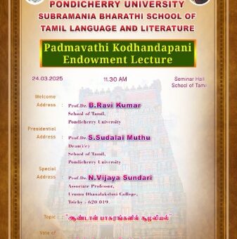 At Pondicherry University on 24th March, 2025, the Subramania Bharati School of Tamil Language and Literature jointly organized a special endowment lecture in memory of Padmavathi Kodhandapani. The special endowment lecture is an important...
