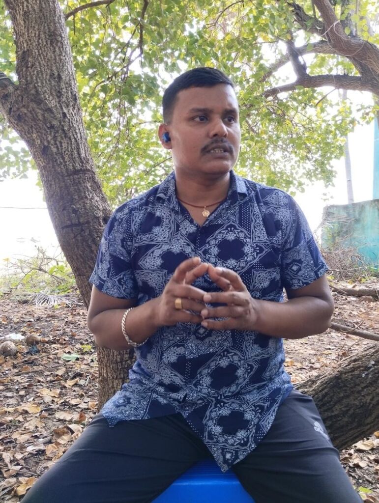 Hence, when his maternal cousin was working in Surat, Gujarat, he left for there and started working as a security guard. That was his first gig. He managed to save up enough to get his elder sister married. He was 14-15 years old back then. After a few years of his sister getting married, he moved to Pondicherry to stay with her family and started working again as a security guard. He believes a sedentary lifestyle of most clerical jobs is the reason why we have so much prevalence of diseases. Hence, he always tries to keep active and work out every day. And promotes this to anyone he meets. He learns new things almost all the time when he is free on his mobile. He is especially fond of searching for different meditation methods and their benefits.
