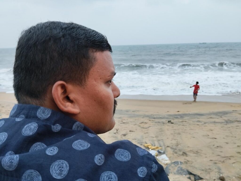 This story is about Rabindra, 32, who works as a security guard in Ananda Rangapillai Library, Pondicherry University. He left his home in Judgepur, Odisha, more than a decade ago in search of work to support his family. Primarily from a farming family, he did not pursue that career, and in his teenage years, he left his home. He is proud of who he has become today and the honest work that he does. To me, he seems one of the most motivating and kind individuals I have met in Pondicherry.