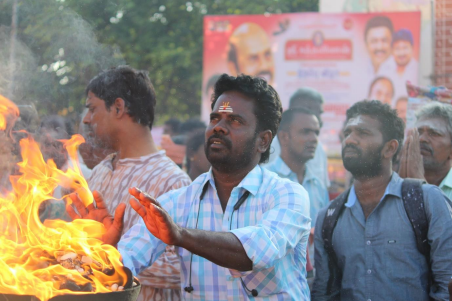 As the sun rises, devotees gather in eager anticipation at Mahadeepam. The flickering light of the Mahadeepam symbolises enlightenment and the divine. Devotees break coconuts, releasing not just the water but their hopes and prayers. As the coconuts shatter, water sprays across the gathered crowd, creating a lively atmosphere filled with a moment of divine connection. Each splash of coconut water is a shared blessing.