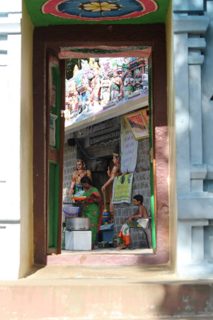 At Gugai Namasivayar’s cave, on every full moon day, food is offered to everyone who comes to pray. This practice brings the community together, as people donate funds to support these offerings.